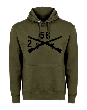 Support your Battalion with this heavyweight 50/50 Cotton-Poly hoodie! Super soft with a front panel pocket and durable draw strings. Tested and loved by Fort Benning's finest!